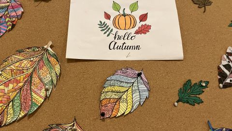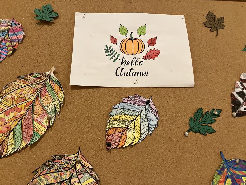 Gazetki na korytarzach szkolnych i w klasie są udekorowane. Zrobiło się ciepło i kolorowo.